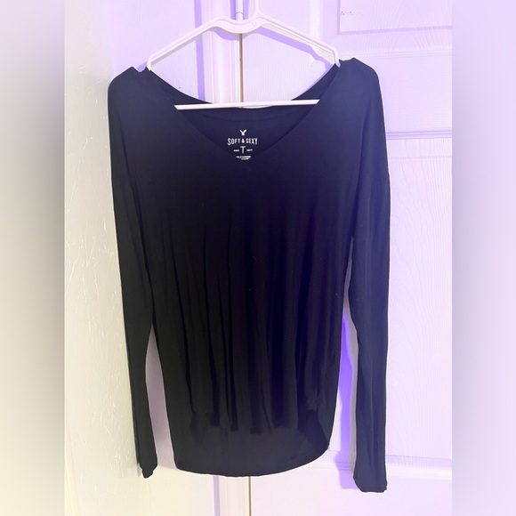 Basic American Eagle black “soft and sexy” small/medium top. Material is stretchy and very soft. Kinda fits like a large to me