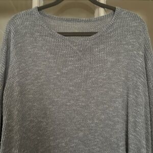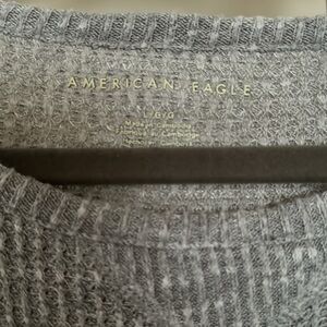AE waffle knit top . Grey long sleeve! Very cozy ! And soft ! So comfy with leggings! Would have kept it’s too big on me . Size Large ! Kinda had a hi- low with a slit . True to size ! PTP 21” length 27-29”