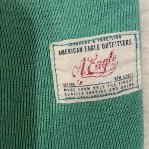 It is a green zip up hoodie with a logo on fringe “A.Eagle Clover Creek Lacrosse”