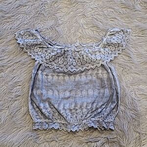 American eagle outfitters womens gray eyelet off the shoulder cropped shirt size xs