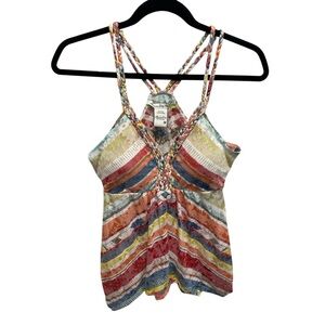 American rag colorful strappy tank top Y2K padded bust women’s medium angled hem