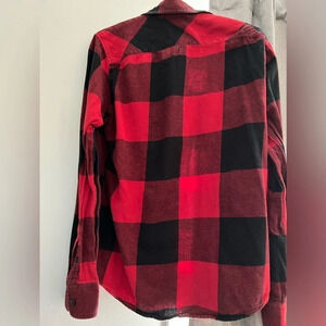 American rag mens red and black plaid button down shirt. Size small. Excellent used condition. Minor color fading.