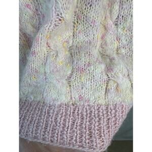 American vintage hand, knit Mohair blend sweater in cream with shades of pink and yellow