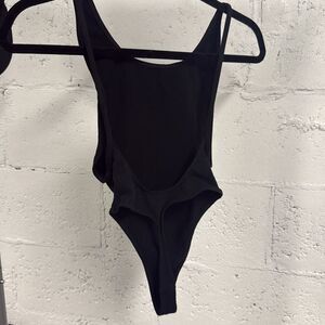 American Apparel Jet Black Bodysuit Thong NWOT - Size XS Open Back - NEW