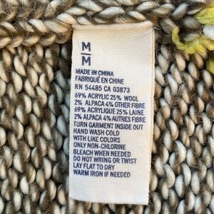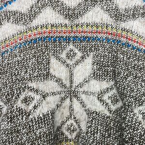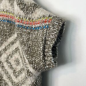 American Eagle aztec print wool/alpaca blend short sleeve open front cardigan. Size medium. In good preowned condition. Some light fuzzing on the edges. No stains. A brown tan cream color combination with red yellow and blue stripes. Armpit to pit measures 26 inches. Top of shoulder down 27 inches. Comes from a smoke free home.