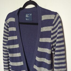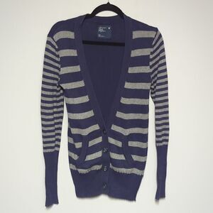 American Eagle Blue & Gray Striped Button Front Cardigan