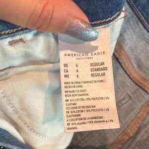 AE “the dream jeans” Super high rise jegging skinny jeans offer a contemporary look with their distressed detailing and medium wash. The jeans feature a full-length design with strategic tears and fraying for a casual, lived-in appearance. 28 inch inseam, size 6 with skinny ankle fit