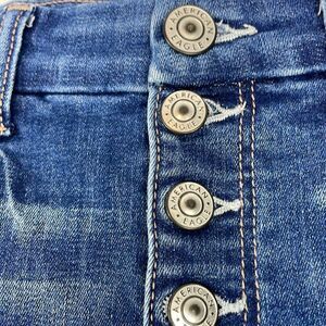 American Eagle Curvy High Rise Shortie Jean Shorts. Size 2. In very good preowned condition. No stains. Buttonfly. Minor distressing. Waist measures approximately 26 inches. Comes from a smoke free home.