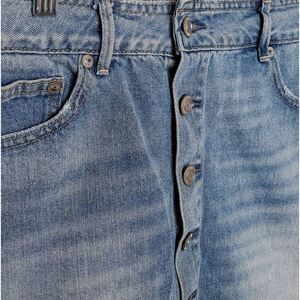 Mild stylised distressing at hem.