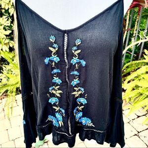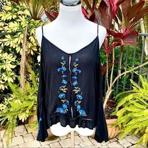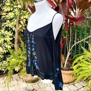American Eagle Floral Embroidery Cold Shoulder Top