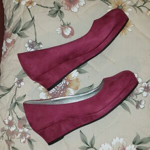 American Eagle Fuchsia Slip On Platform Wedge Heels