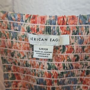 American Eagle Girly Boho Chic Chiffon Blouse Peach Floral Ruched Peplum Top S