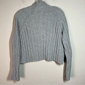 American Eagle Gray Rib Chunky Cabble-knit Mock Neck Crop Sweater Women's Small