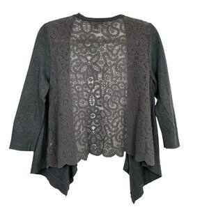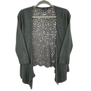 American Eagle Lace Back Open‑Front Gray Cardigan Women’s L Cotton Blend