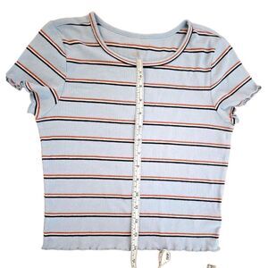 American Eagle Light Blue Stripe Crop Top (Size S)