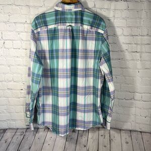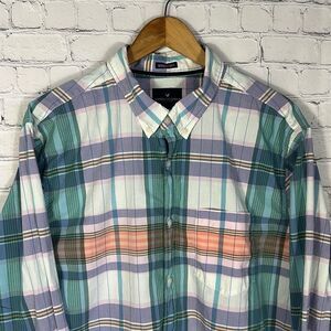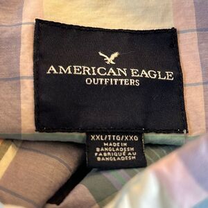 American Eagle Seriously Soft Mens Lightweight Purple Blue Green Button Down Long Sleeve size XXL