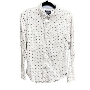 American Eagle Navy Polka Dot Button Down Size Medium NEW