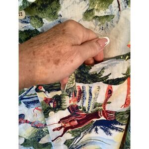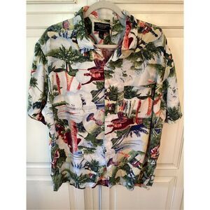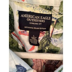 American Eagle Ohelo Wahine Hula Waterfall Sz L Button Down Shirt Linen Blend Ha
