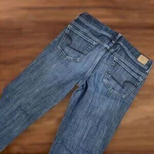 Y2k American Eagle jeans with light stretch and bootcut longer length. Lower rise.Great for boho or western look. Good overall condition