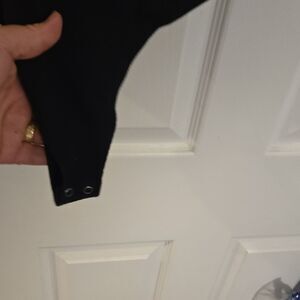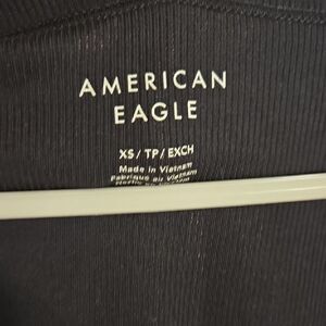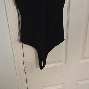 Discover the sleek elegance of this black bodysuit from American Eagle Outfitters, featuring a fitted design and a classic polo collar. Crafted for a seamless look, this top combines style and comfort effortlessly.