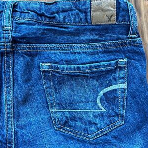 These American Eagle Outfitters jean shorts feature a stylish distressed look in a classic blue hue, perfect for a laid-back vibe. Crafted from high-quality denim, they offer a comfortable fit with a mid-thigh length, making them ideal for casual outings.