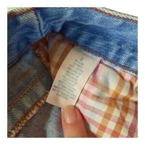 These blue jean shorts from American Eagle Outfitters feature a trendy distressed design with a frayed hem, perfect for a relaxed summer look. The lightweight denim offers comfort and style, making them ideal for warm weather adventures.