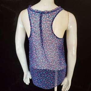 American Eagle Outfitters blue and pink floral patterned lightweight sheer tank top.