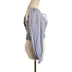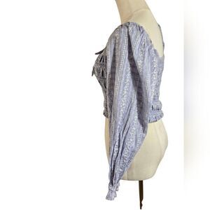 American Eagle Outfitters Dusty Blue Floral Smocked Crop Top