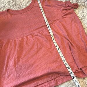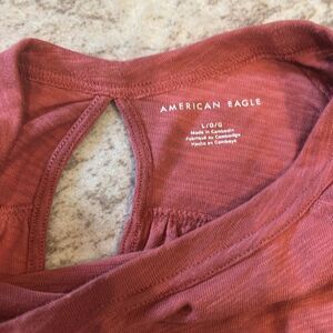 AEO orange blouse from American Eagle Outfitters features a relaxed, boxy fit with short dolman sleeves and a stylish peplum design. The lightweight fabric and kimono-style sleeves offer a breezy feel, making it perfect for casual outings.