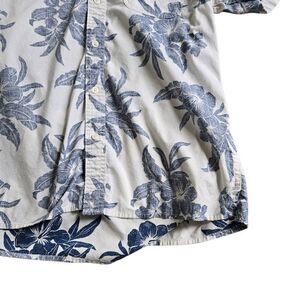American Eagle Outfitters Shirt Men's Medium Ivory Blue Tropical Short Sleeve