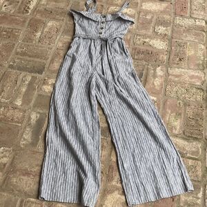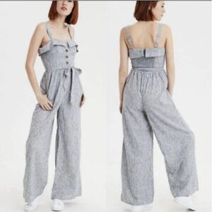 American Eagle Outfitters Sleeveless Blue & White Belted Wide Leg Romper Size 0