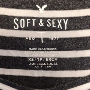 American Eagle Outfitters Soft and Sexy Striped Long Sleeve Tee. This top really lives up to it's name! Soft, comfortable, and so cute on! Charcoal gray and white stripe. Size XS.