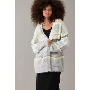 American Eagle Outfitters Whoa So Cozy Fuzzy Cardigan Striped Size Small