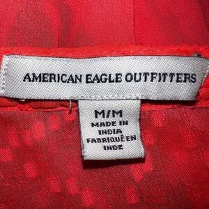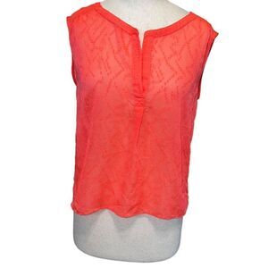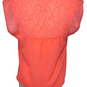Orange in color with some texture to the fabric. Semi shear. I like the top with out a full overage underneath. I worry a close to match bra or nudes fine. 100% polyester so super easy cleaning machine wash and hang dry. Cute top will go with just about anything this summer.