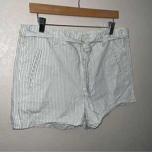 American Eagle Striped Paper Bag Waist Cuffed High Rise Shorts