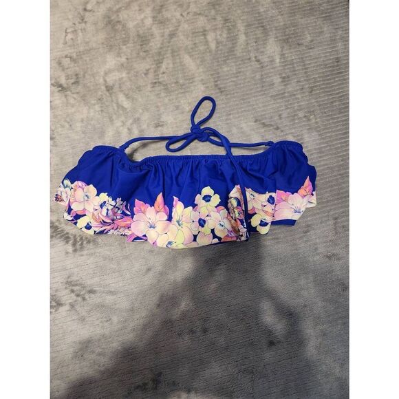 American Eagle Size S Blue FloralStrapless Bandeau Bikini Top