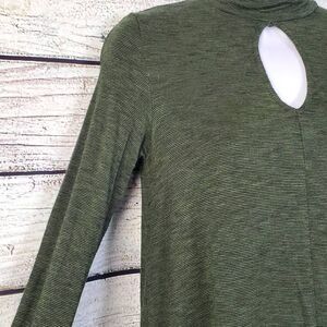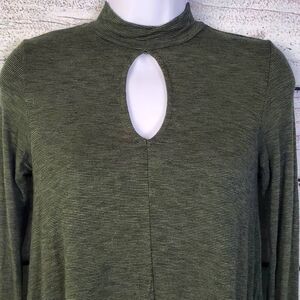 American Eagle Soft & Sexy Slub Long Sleeve Top XS Olive Green Mock Neck Keyhole