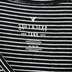 American Eagle Soft Sexy Tank Top Size M Black Striped Floral Embroidered Scoop