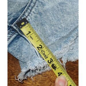 American Eagle Strigid jean shorts frayed distressed Size 4 light wash asymmetrical waist closure. Rise 11.5". Inseam 2.75". Length 12.5".