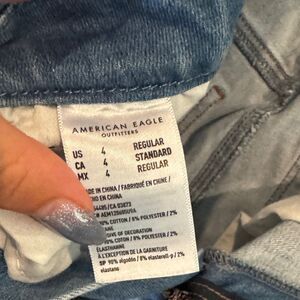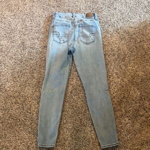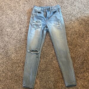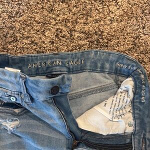 American Eagle “ super curvy hi rise jeggings” Nezt level stretch jeans will elevate your casual wardrobe with these stylish light blue distressed jeans. Perfect for a trendy, laid-back look. 26inch inseam. Size 4