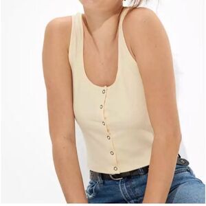 American Eagle Sunny Yellow Button Front Ribbed Tank Shirt Size XXL. New without tag.