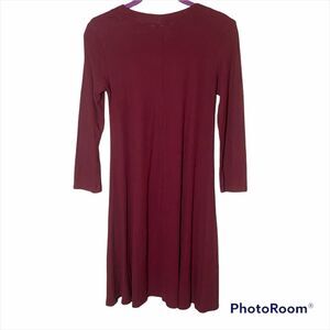 American Eagle Women's Soft and Sexy Sweater Long Sleeved T-Shirt Ribbed Knit Dress size XS but stretchy, could also fit small. Burgundy knit material is 96% Viscose and 4% Elastane. Great preowned condition!