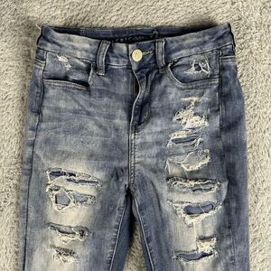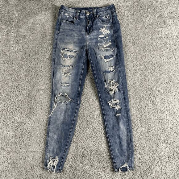 American Eagle Womens Curvy Hi-Rise Jegging 2 Short Distressed Stretch Destroyed