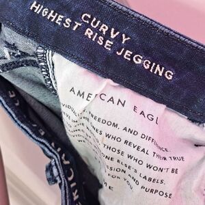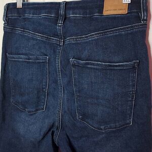 American Eagle Women's Curvy Highest Rise Jegging Dark Wash Raw Hem sz 8 Reg