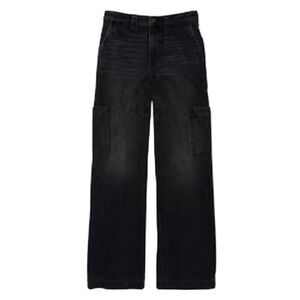 American Eagle Women's Distressed Black Cotton/Spandex Denim High Rise Baggy Wid