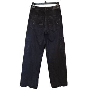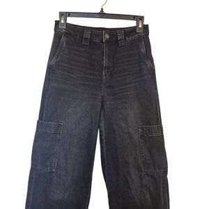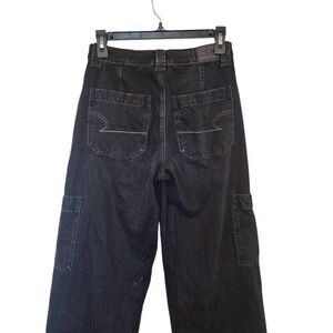 American Eagle Women's Distressed Black Cotton/Spandex Denim High Rise Baggy Wide Leg Comfort Stretch Waistband Jeans EUC sz 00