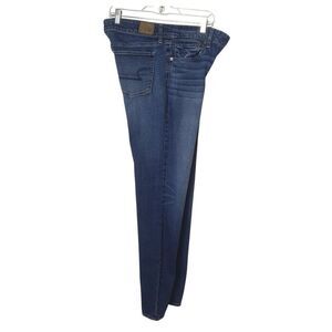 American Eagle Womens Jeans 12 Long Blue Super Stretch Denim Mid Rise AEO Flex