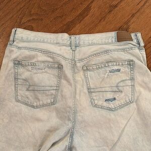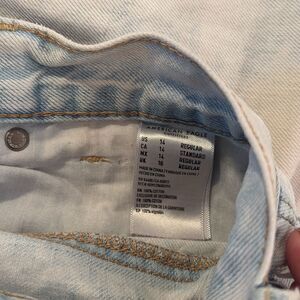 Excellent used condition American Eagle, white washed jeans, size 14, distressed, two small spots, see photos, they are not noticeable, really cute jeans, high waisted (3001)