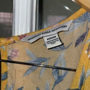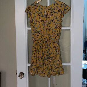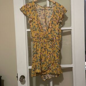 American Eagle yellow floral flutter sleeve tropical summer romper size medium