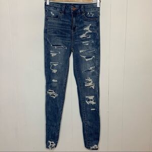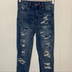 American Eagle AEO Curvy Hi Rise Jegging Jeans Destroyed Distressed Size 0